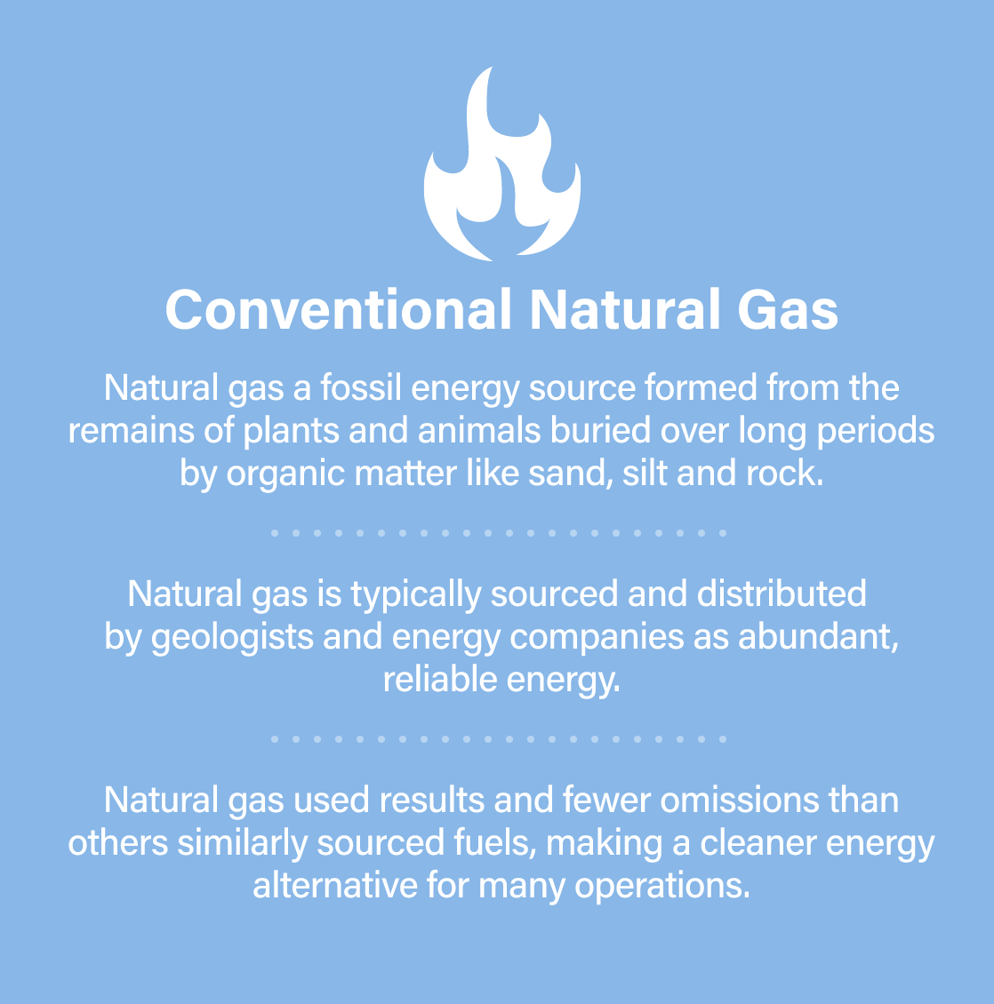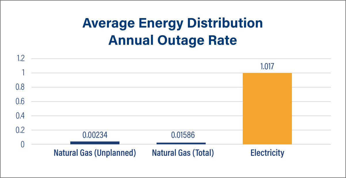 Because natural gas is delivered through a system of underground pipelines, it is protected from the elements and far less affected by above ground conditions, making it less prone to outages.